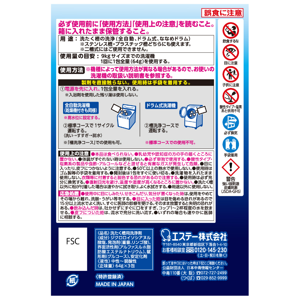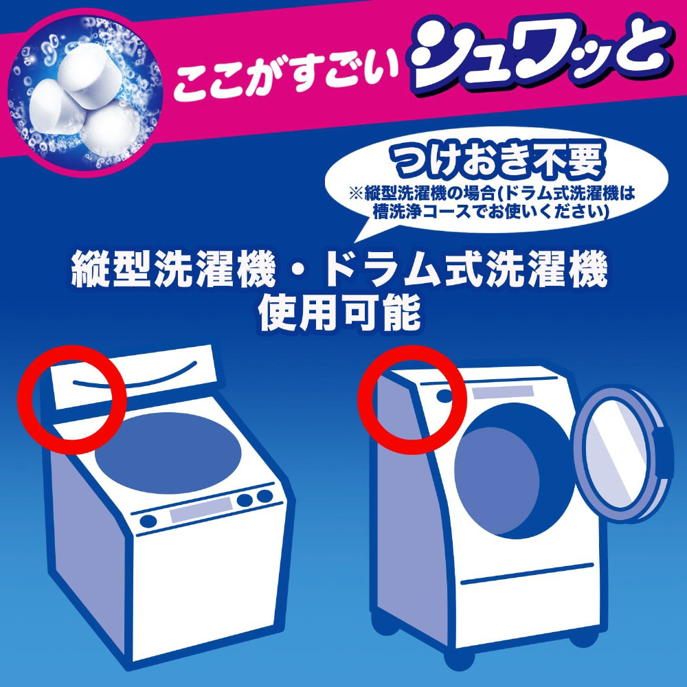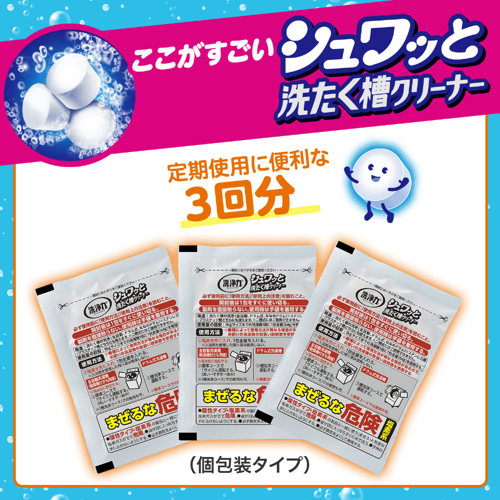 洗浄力 シュワッと洗たく槽クリーナー 64g ×3回分 [洗濯槽 除菌 消臭] [ドラム式・縦型洗濯機対応 /塩素系] [ドラム式・縦型洗濯機対応 /塩素系]