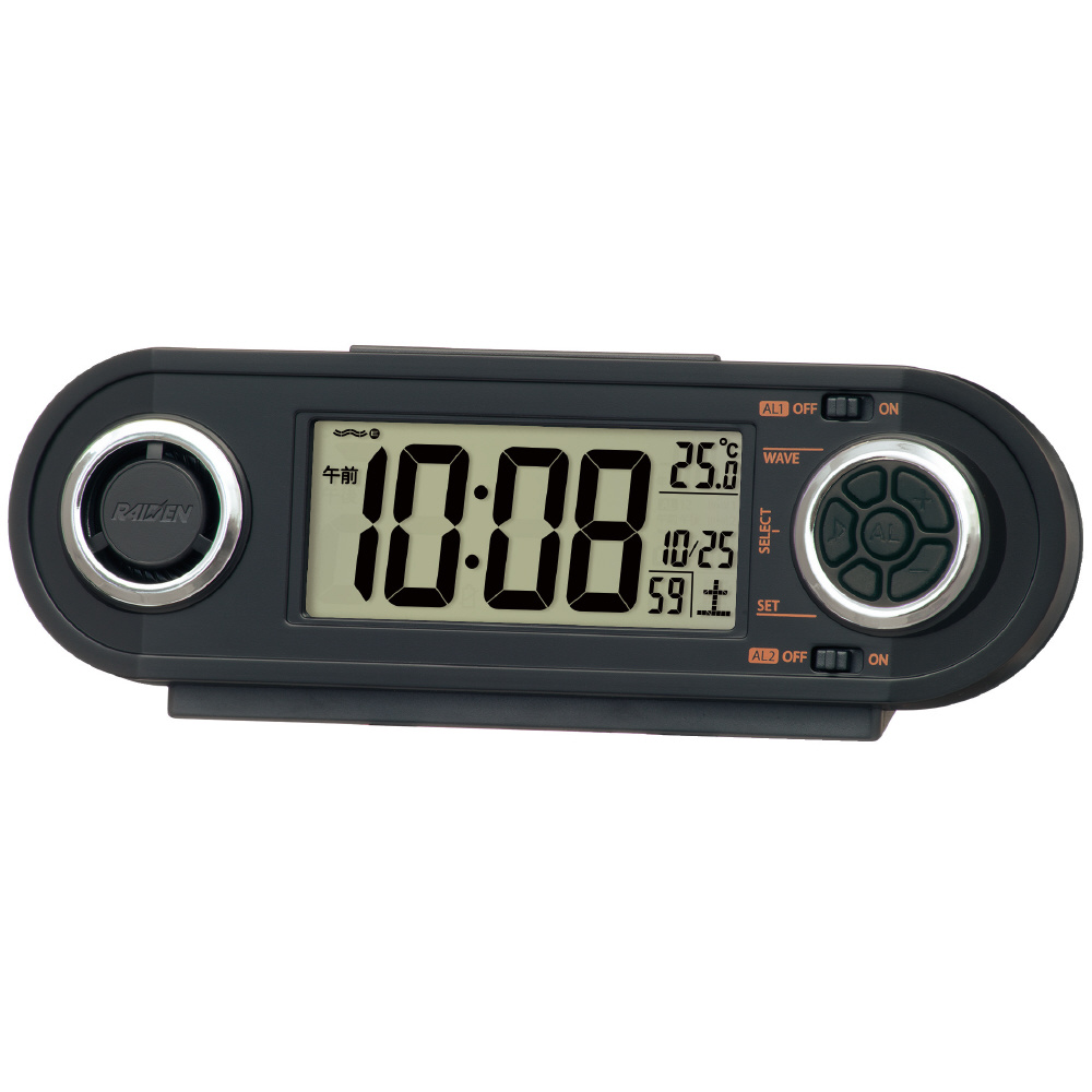 目覚まし時計 【RAIDEN(ライデン)】 黒 NR537K [デジタル /電波自動受信機能有]