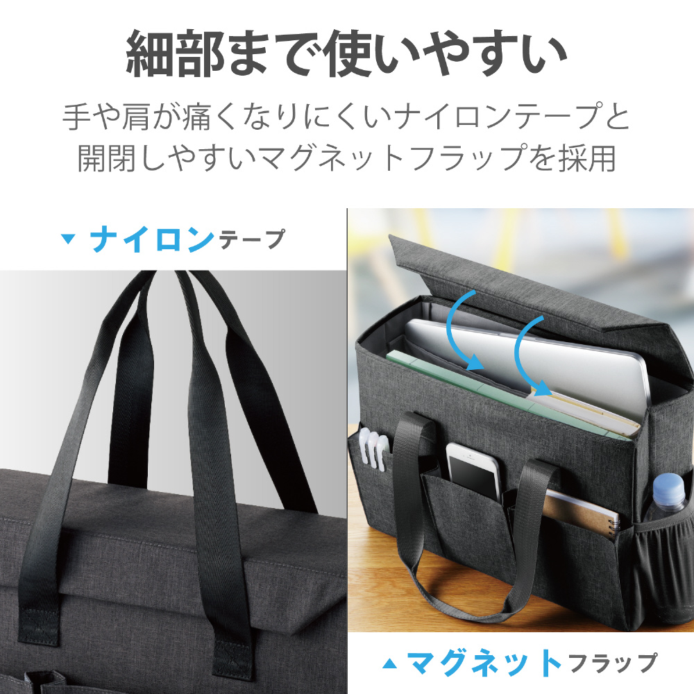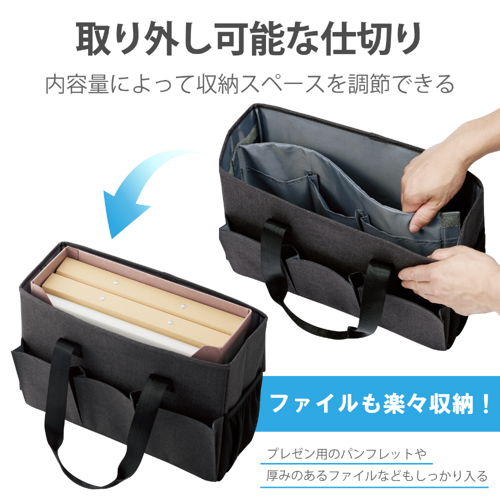 ■資料やワークツールをまとめて収納・保管できる、大容量のボックス型トートバッグです。