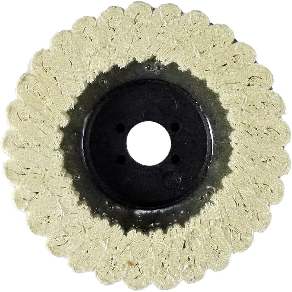 綿布ならではの美しい仕上げ。金属の最終仕上げ用。バフ研磨の#600仕上げ程度。ステンレス・アルミ等の鏡面研磨に。繊維の密度が高く、麻バフディスクの仕上げをさらに美しくします。麻バフディスクの後研磨に最適です。回転数を下げて使用された方がきれいに仕上がります。