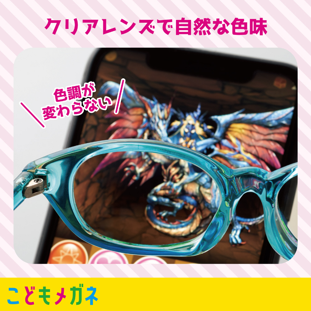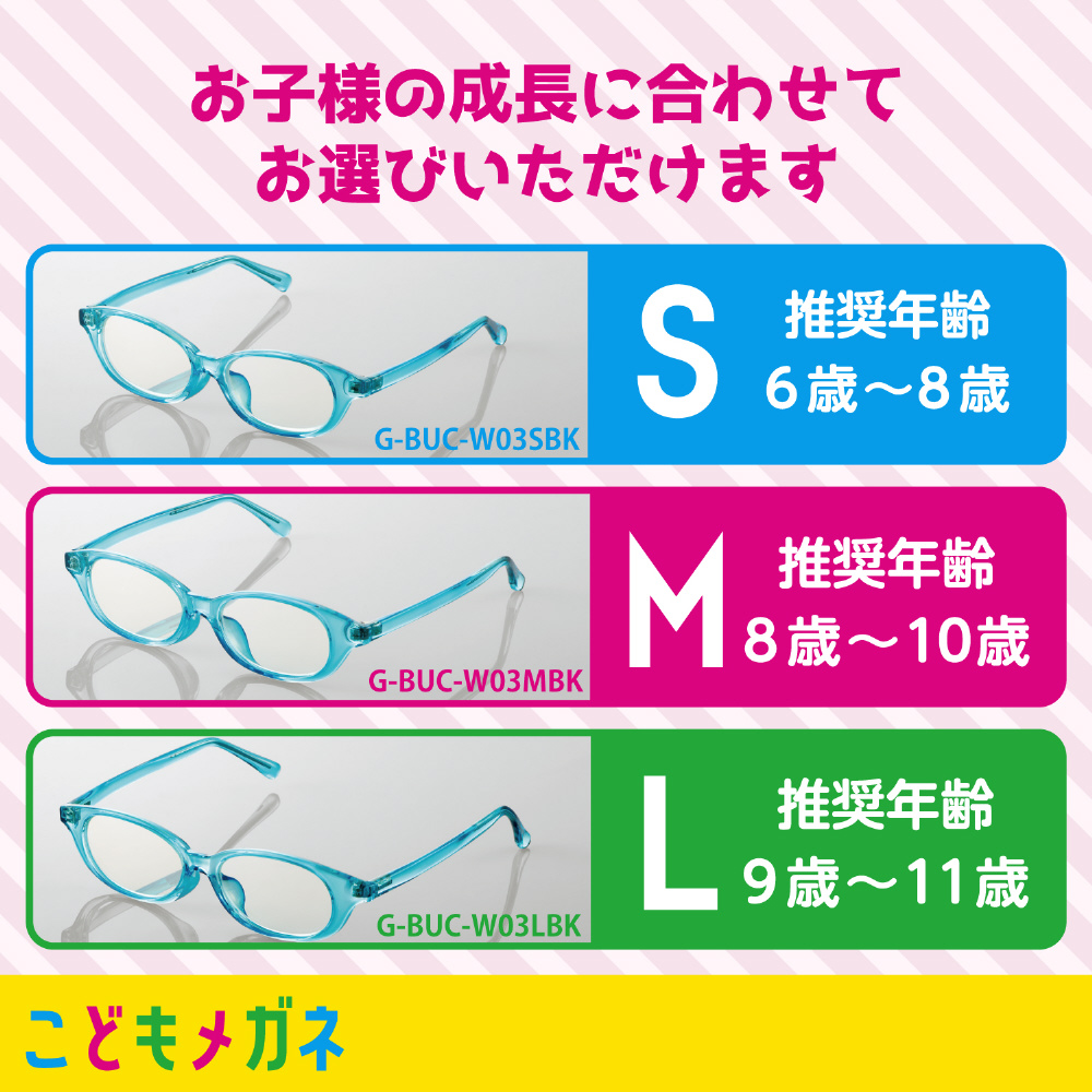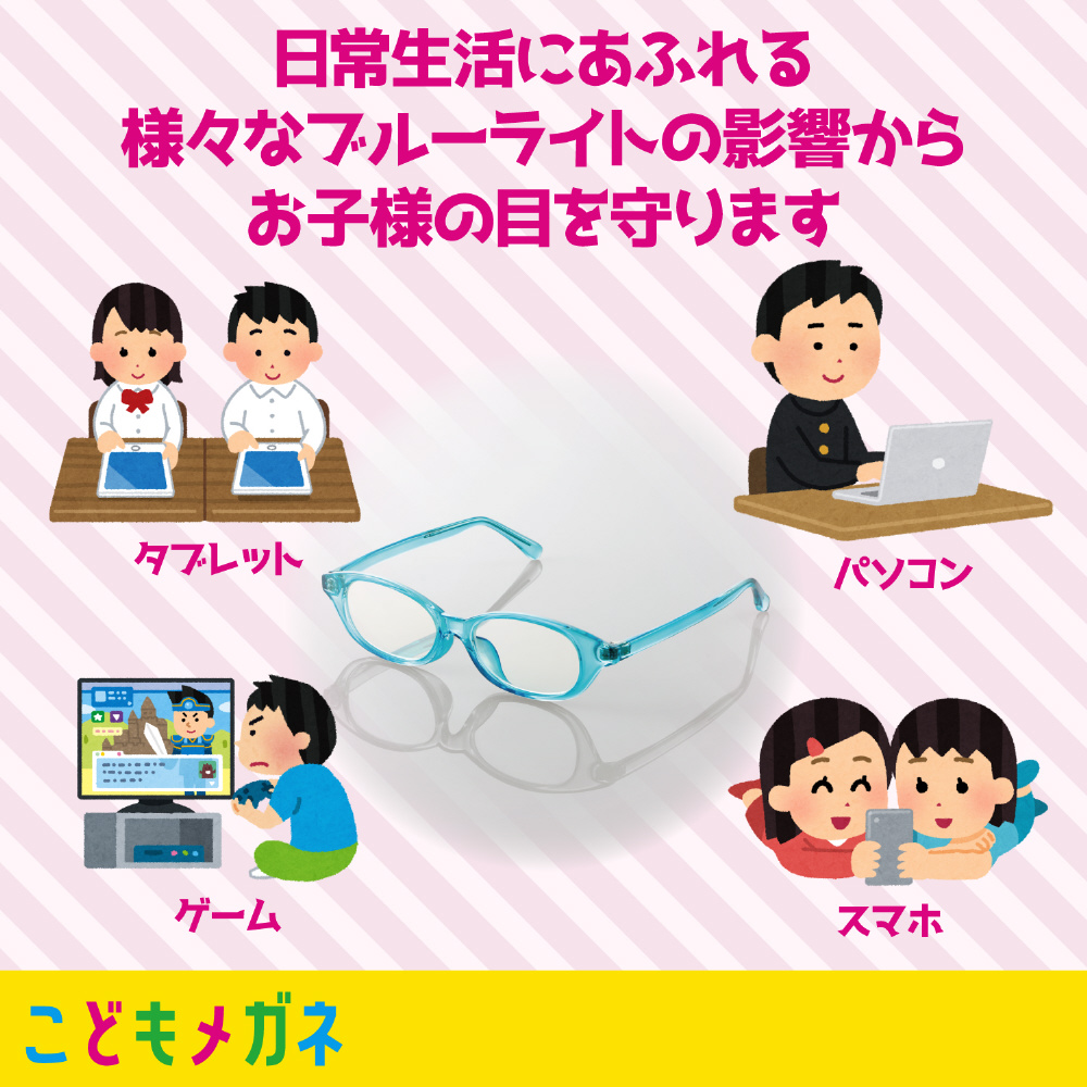 お子様の成長に配慮して3サイズを用意したこどもメガネ!小学生のテレスタディー(遠隔授業)、 タブレット学習、ゲーム中に着用することで、ディスプレイが発する「ブルーライト」から、お子様の目を守ります。