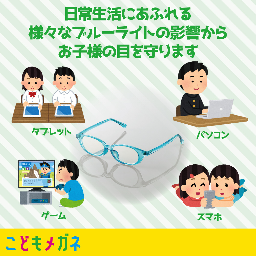 ■スマートフォン、タブレット、ゲーム機などのディスプレイが発する「ブルーライト」をカットし、お子様の目を大切にするブルーライト対策メガネです。