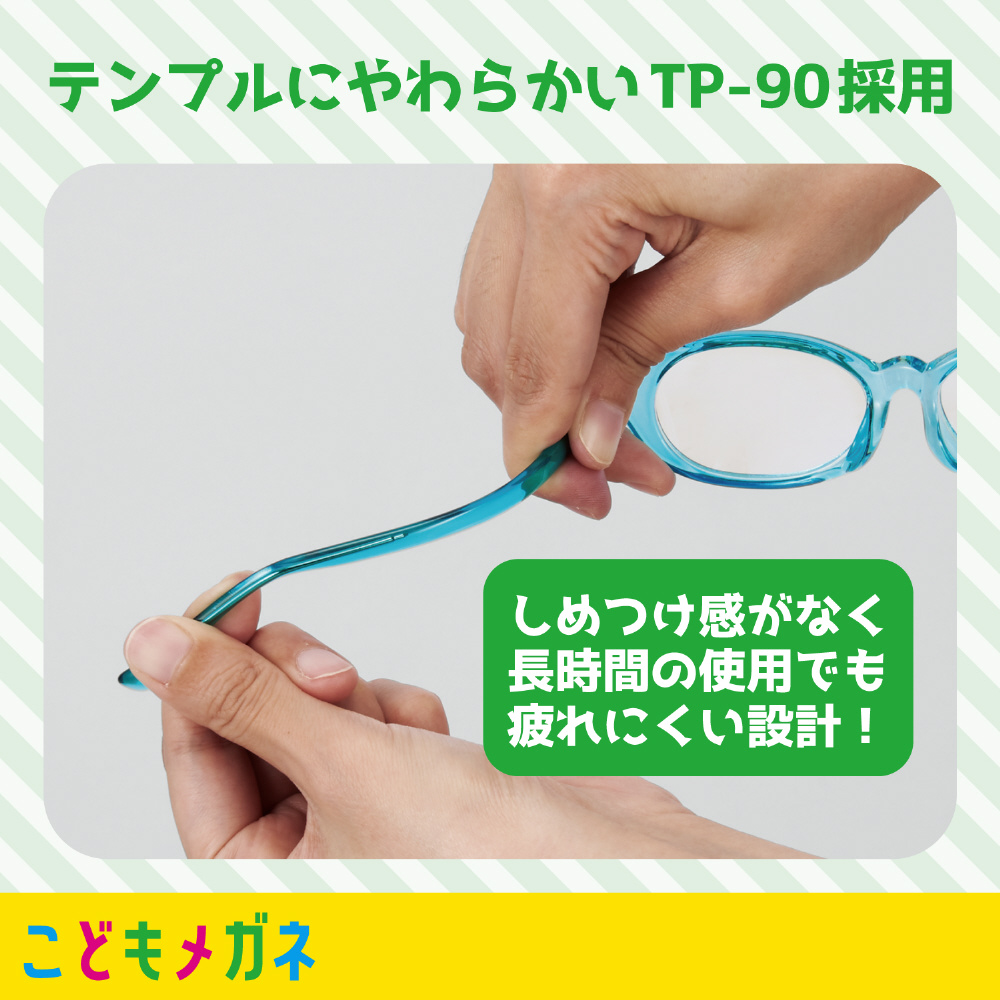 ■超軽量弾力素材「TR-90」をテンプル(メガネと顔を支えるつるの部分)に採用しているために、耳が痛くなりにくい構造です。