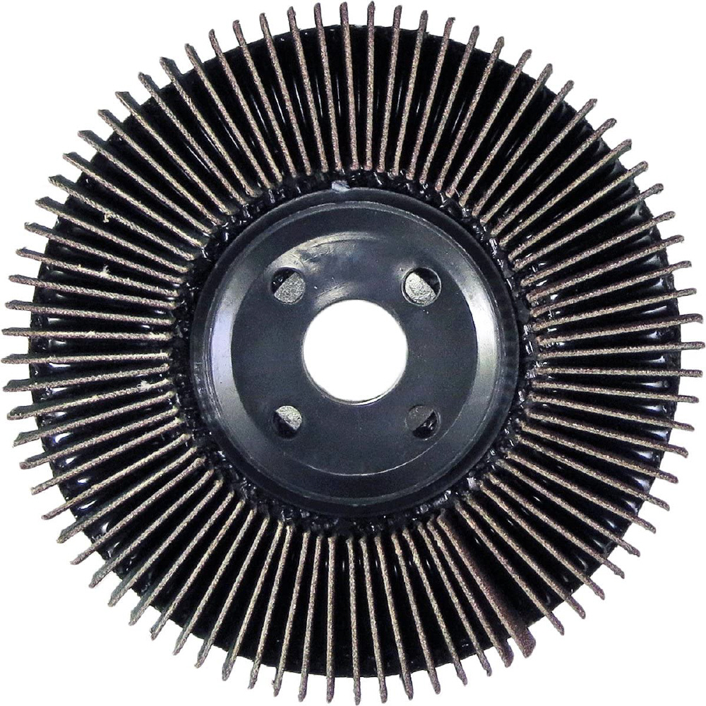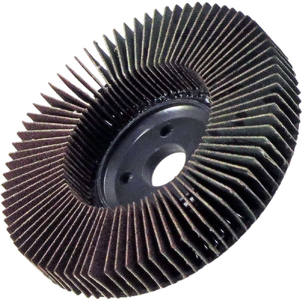 金属・木工の表面研磨、サビ取り、塗料はがし、木材のケバ取り、木目出しなどにも適します。直角に立てた研磨布がしなるので、ソフトなアタリでワークによく馴染みます。プラスチックの研磨にも適します。研磨布が端からすり減るので目詰まりが少なく、発熱性も少なくワークを変質させません。基盤の直径が研磨布の外径より小さいため、角の研磨もでき、二面同時研磨も可能。