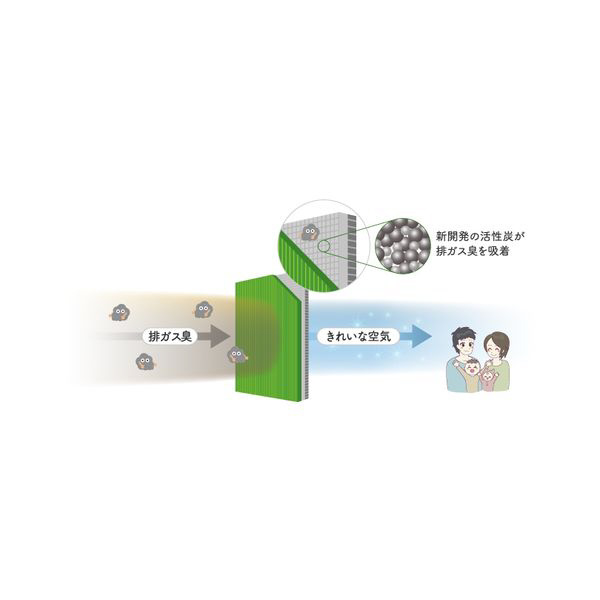 ●新開発の活性炭が排ガス臭(アセトアルデヒド)をカット!