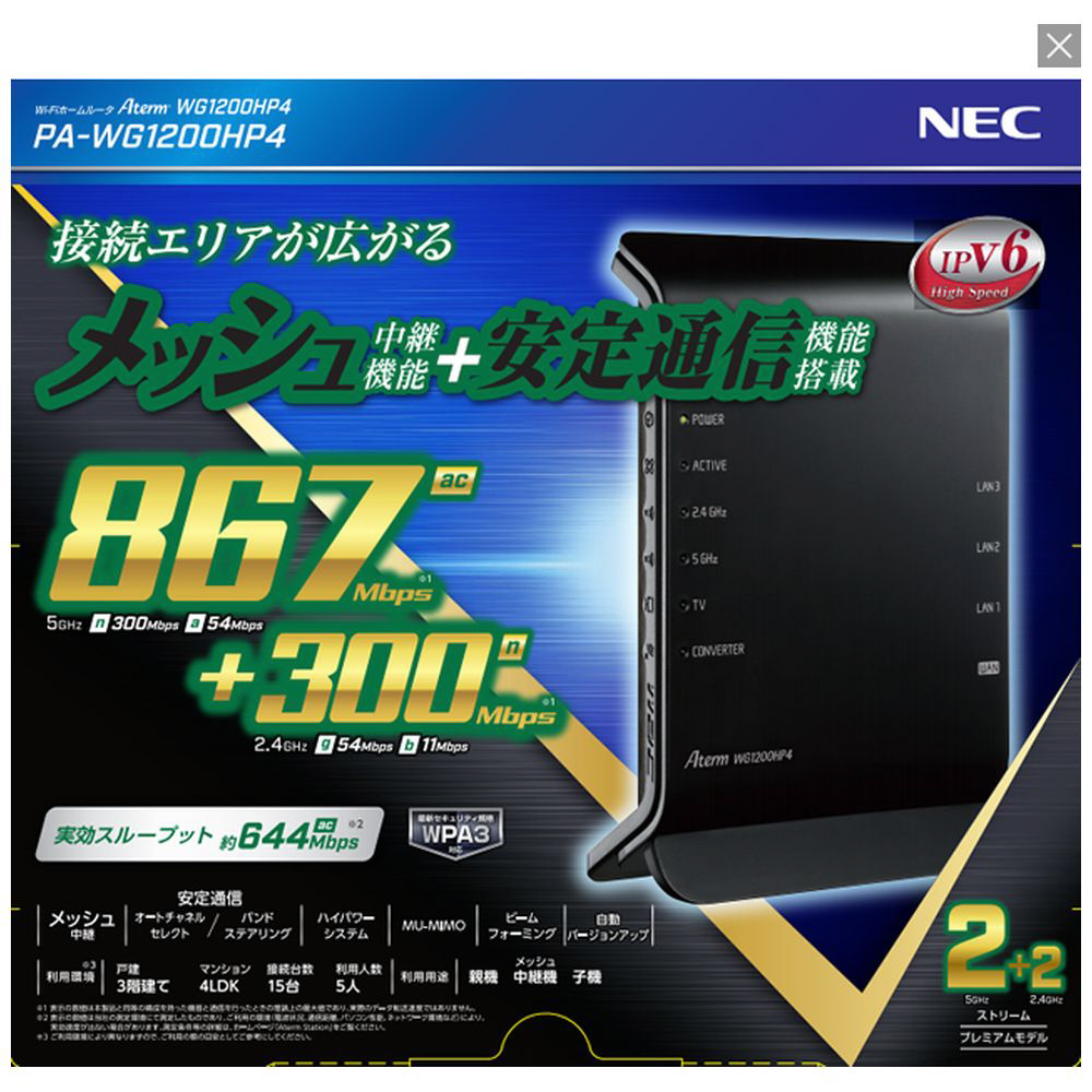 Wi-Fiルーター Aterm(エーターム) PA-WG1200HP4 [Wi-Fi 5(ac) /IPv6対応]