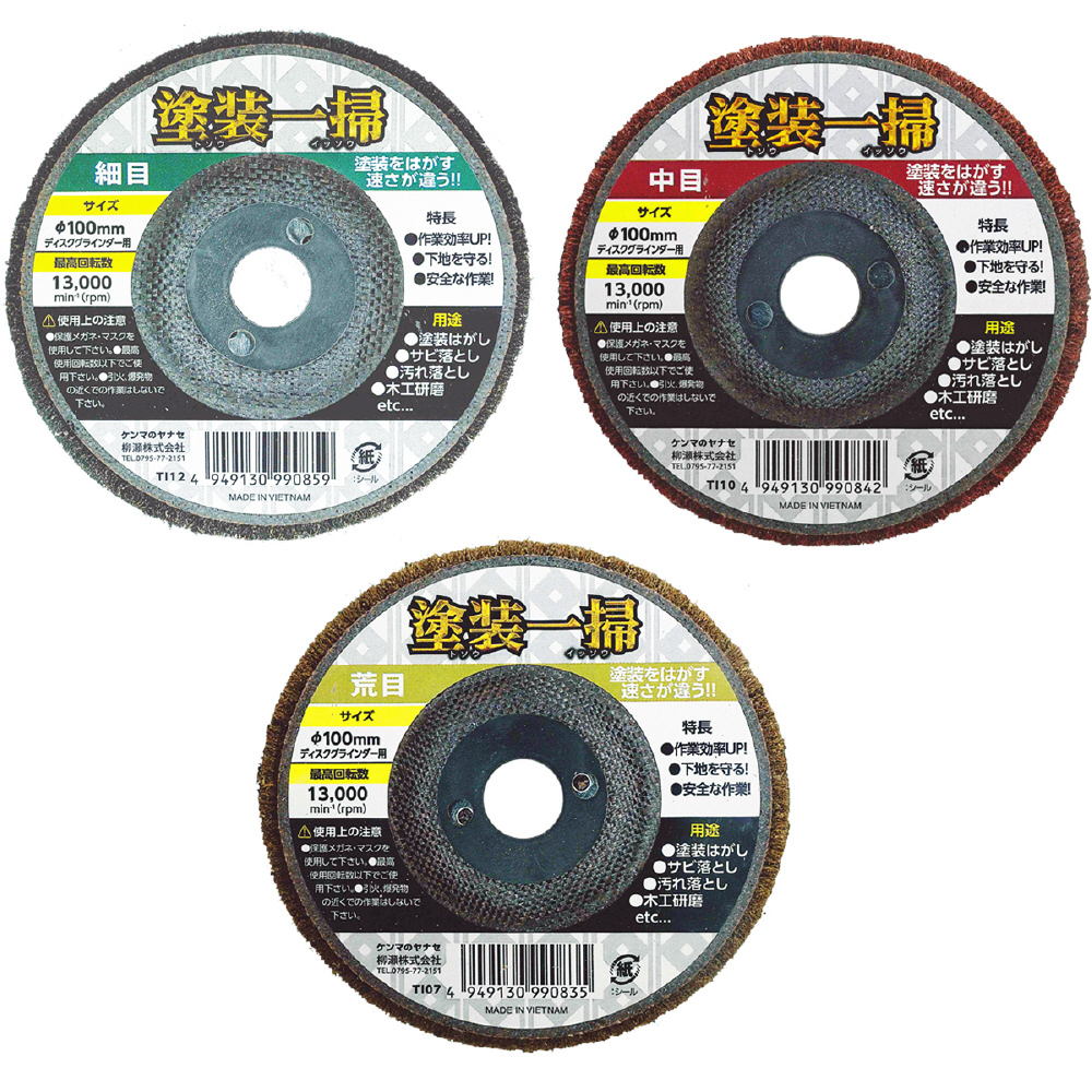 塗装はがし・サビ落とし・汚れ落とし・木工研磨。塗装一掃 アソート 3枚パック。
