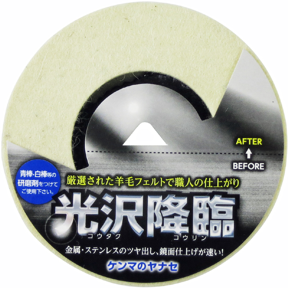 金属・ステンレス・石材・ガラスのツヤ出し・鏡面仕上げに。研磨材(青棒、白棒など)を塗布してご使用下さい。