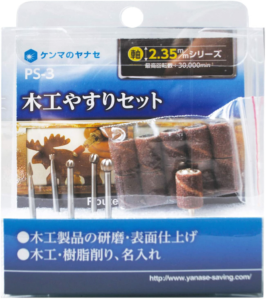 木工製品の研磨・表面仕上げに。木工・樹脂削りネーム彫り作業に。2.35mm軸対応のルーターに取り付け使用してください。