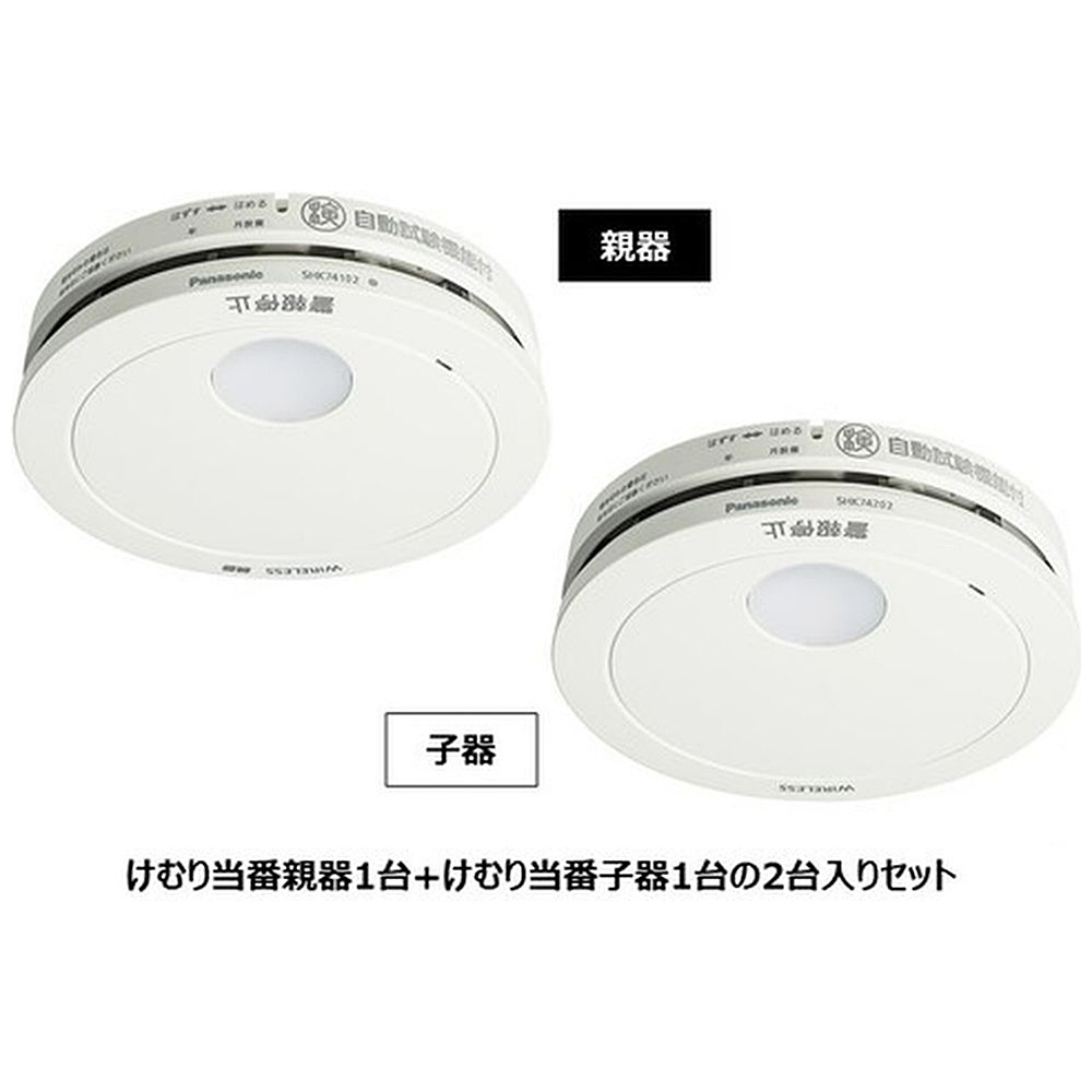 住宅用火災警報器(電池式・ワイヤレス連動親器・子器セット(2台)・あかり付(警報音・音声警報・AiSEG連携機能付) けむり当番薄型2種 SHK79022P