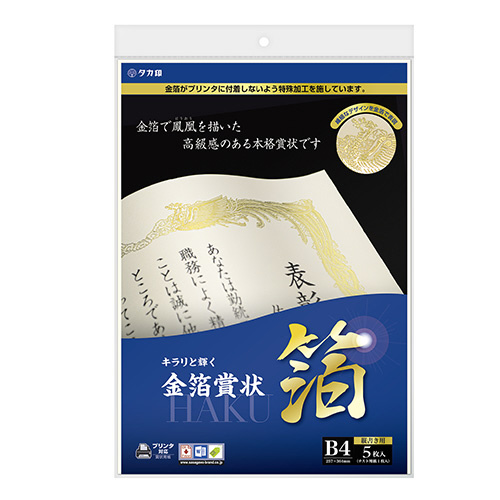 | 商品名 | 〔各種プリンタ〕金箔賞状用紙 縦書用 0.25mm [B4 /5枚] 白 10-3070 |