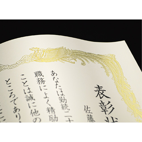 金箔で鳳凰を描いた高級感のある本格賞状です