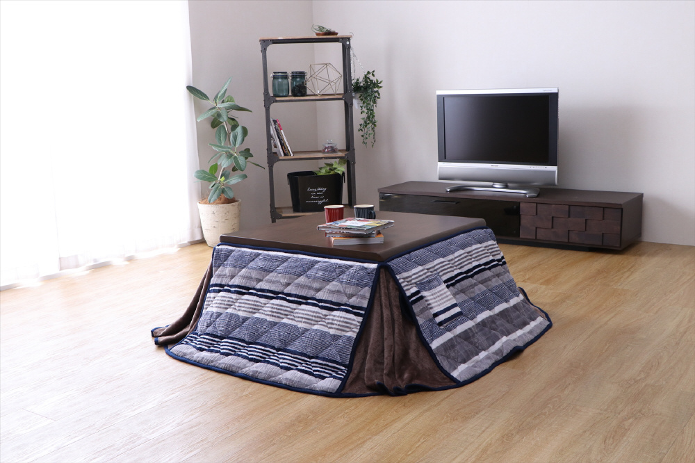 マルチボーダーの遊び心でお部屋を明るくするこたつ布団です!
