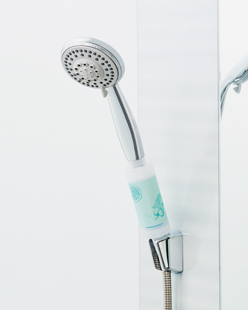 シャワーヘッドに取り付けるカートリッジで、塩素除去+アロマの効果を発揮します。