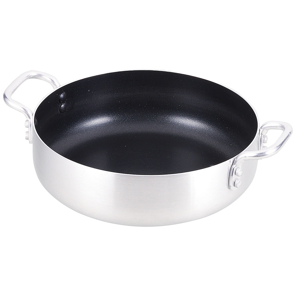 ■材質: 表面加工=内面=ふっ素樹脂塗膜加工 材料の種類=本体=アルミニウム合金 はり底=ステンレス鋼(クロム16%)