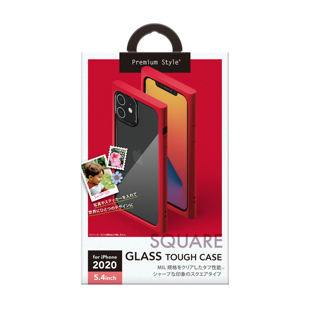 iPhone 12 mini 5.4インチ対応ガラスタフケース スクエアタイプ レッド Premium Style レッド PG-20FGT06RD