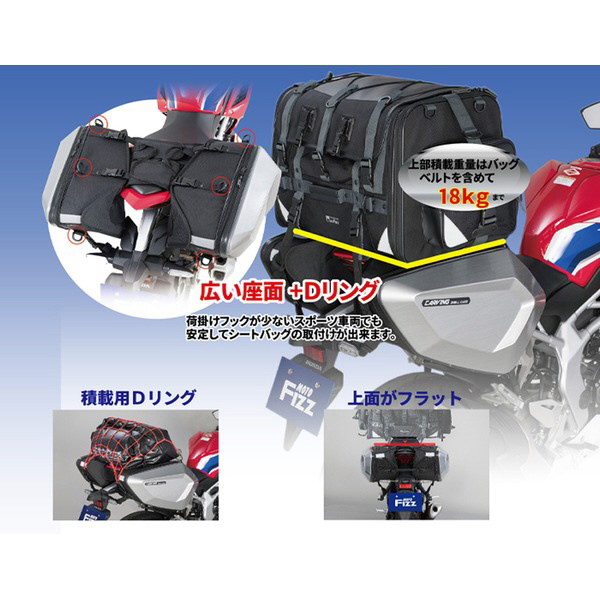 ・狭いリアシートでも、このバッグを装着する事でシートバッグの安定装着が可能。