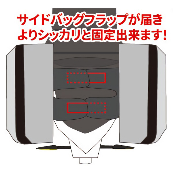 ・グラブバーが張り出した車両や、アドベンチャー系の幅が広いリアシートは標準のフラップでは長さが足りないことがありましたが、この延長フラップを使用することでそんな悩みを解決してくれます。