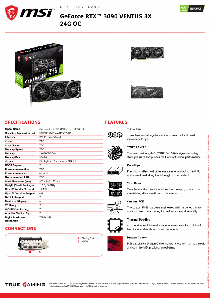 グラフィックボード GeForce RTX 3090 VENTUS3X 24G OC [GeForce RTXシリーズ /24GB]
