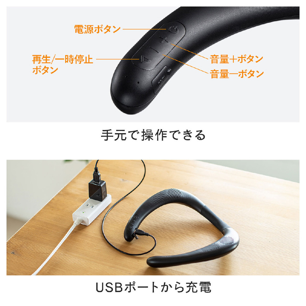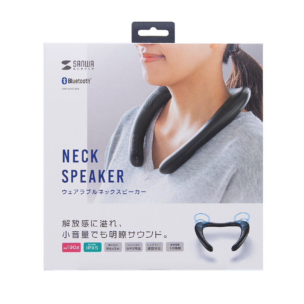 Bluetoothウェアラブルネックスピーカー MM-SPBT4BK [Bluetooth対応 /防滴]