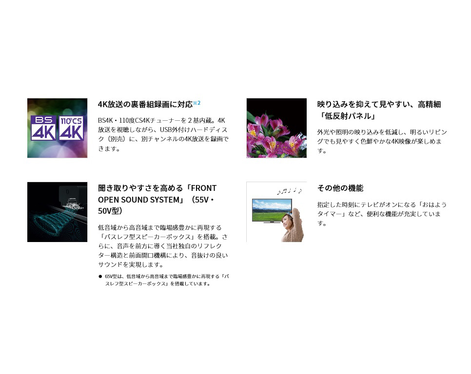 4Kダブルチューナー内蔵(裏録対応)のスタンダードモデル。音抜けのいいサウンドを実現。