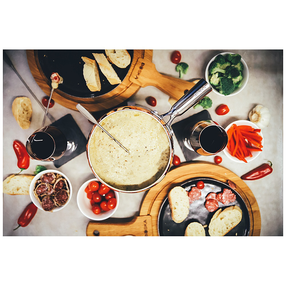 セット内容(チーズフォンデュ鍋、フォーク4本、フォンデュストーブ、スタンド)