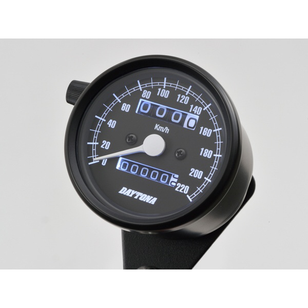 機械式スピードメーター φ60 ホワイトLED照明 ブラックボディ/ブラックパネル 220km/h 15623
