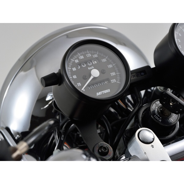 ●クラシカルなパネルデザインで220km/h表示のスピードメーター。