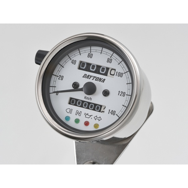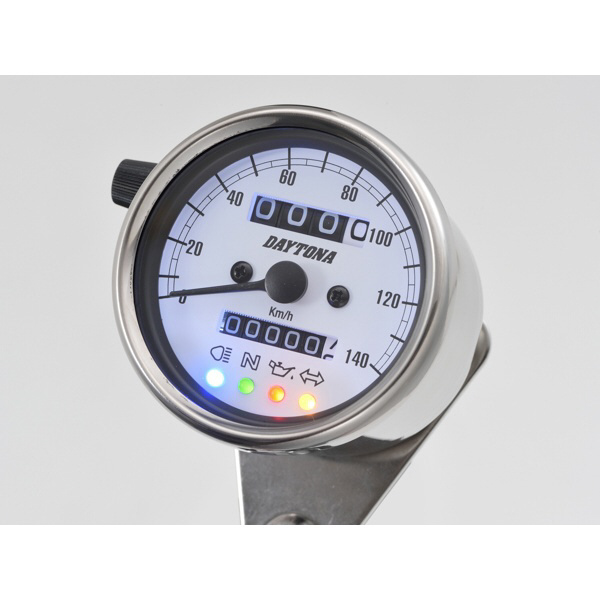 機械式スピードメーター φ60 ホワイトLED照明(インジケーター付き) ステンレスボディ/ホワイトパネル 140km/h 15639