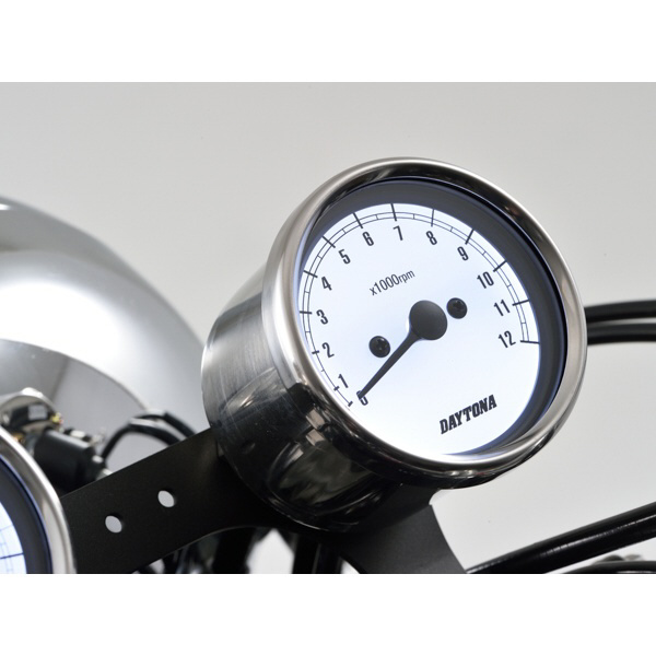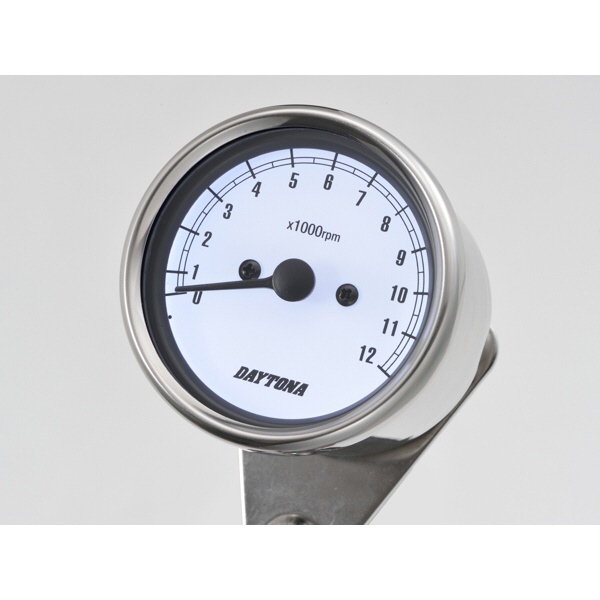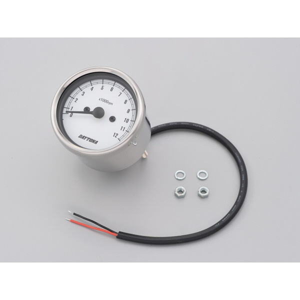機械式タコメーター φ60 ホワイトLED照明 ステンレスボディ/ホワイトパネル 12000rpm   15642