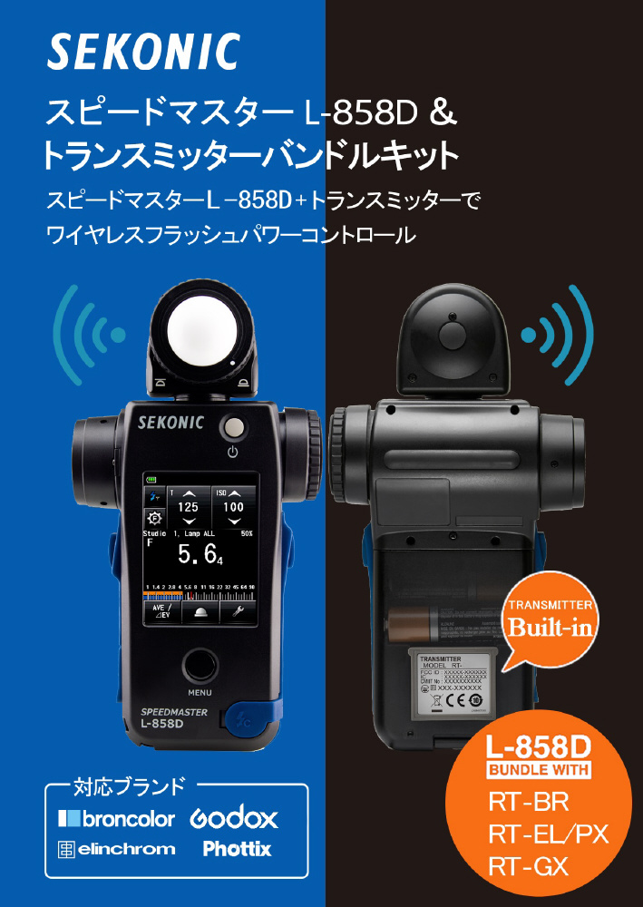 スピードマスターL-858DにトランスミッターRT-BR(broncolor社フラッシュ用)を同梱した数量限定のお得なセットです。