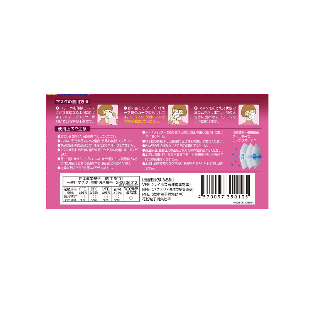 耳が痛くなりにくいやわらか幅広ゴム使用の為。長時間使用をサポート。形が崩れにくいノーズフィットワイヤー使用。小さめサイズ