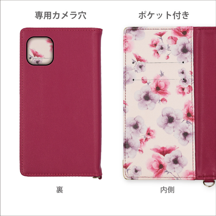 ケースを開くたびに花が咲き誇る、乙女心をくすぐる手帳型スマホケースです。