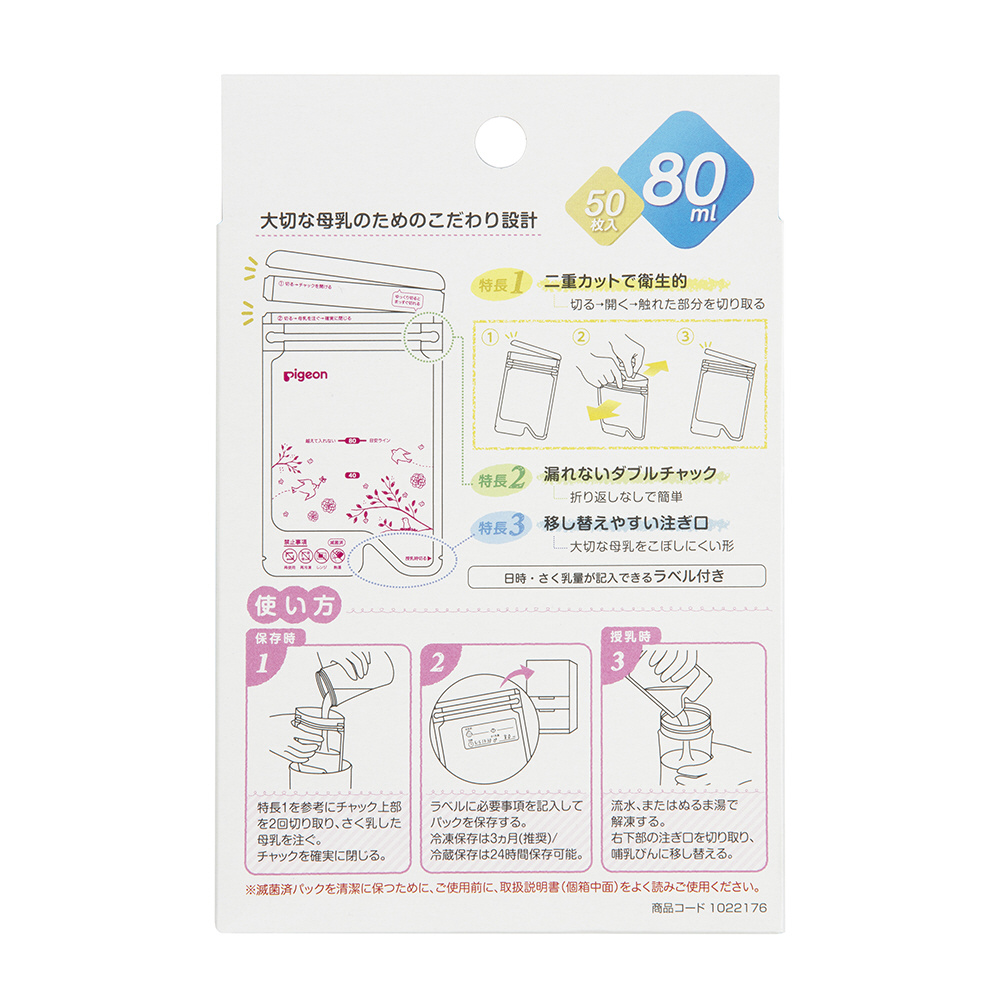 | 商品名 | 母乳フリーザーパック80ml 50枚入 ピジョン母乳アシスト 1022176 |