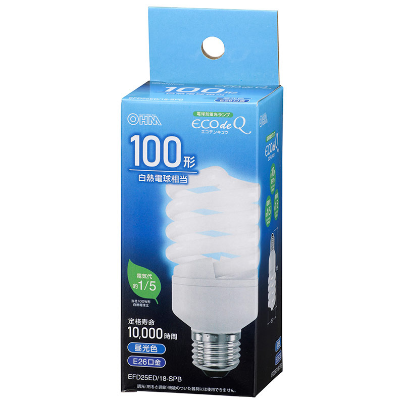 | 商品名 | エコ電球スパイラル形100WタイプE26昼光色 ECOdeQ(エコデンキュウ) EFD25ED/18-SPB [E26 /100W相当 /昼光色 /1個 /全方向タイプ] |