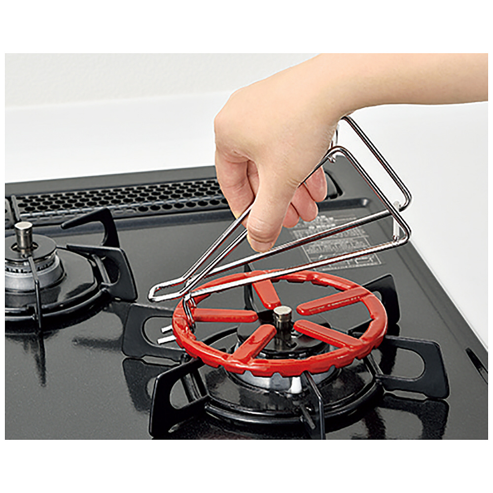 熱い五徳をパッと片づけ。サッとひっかけて立てるだけ。