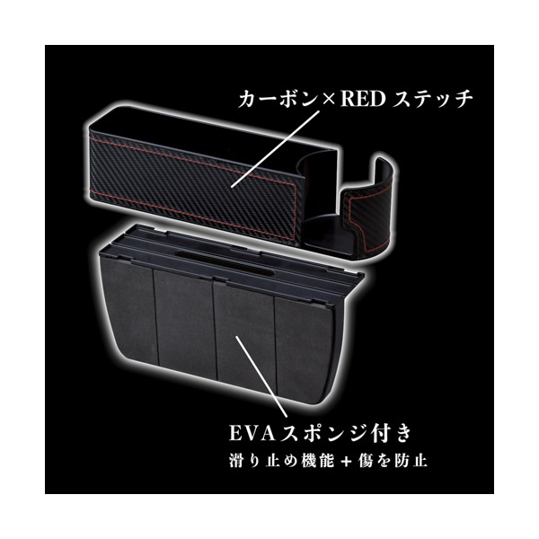 車内収納用品 シートサイドポケット カーボン調 カラー:ブラック&レッド 座席&隙間挿入タイプ