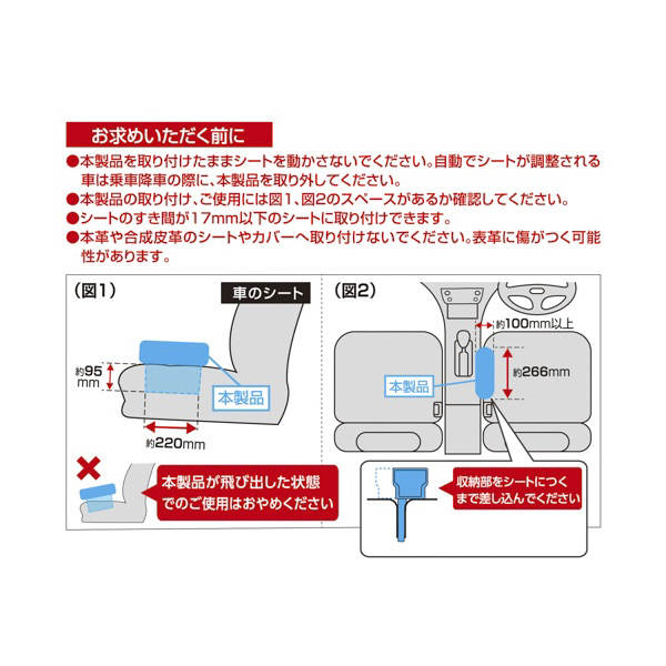 ●シートサイドに差し込むだけで簡単に取り付けできます。