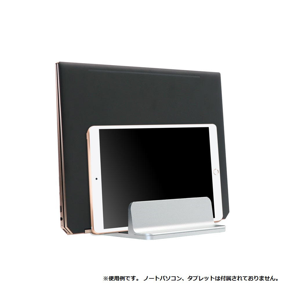 ノートパソコン / タブレットPCスタンド[〜15・16インチ 2台収納] 縦置き用 アルミ製 シルバー TM-PCST-01