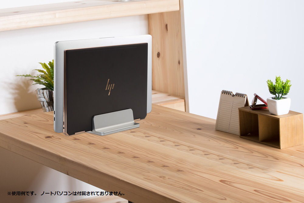 ノートPCを閉じた状態で、最大2台を縦置き収納できるスタンドです。