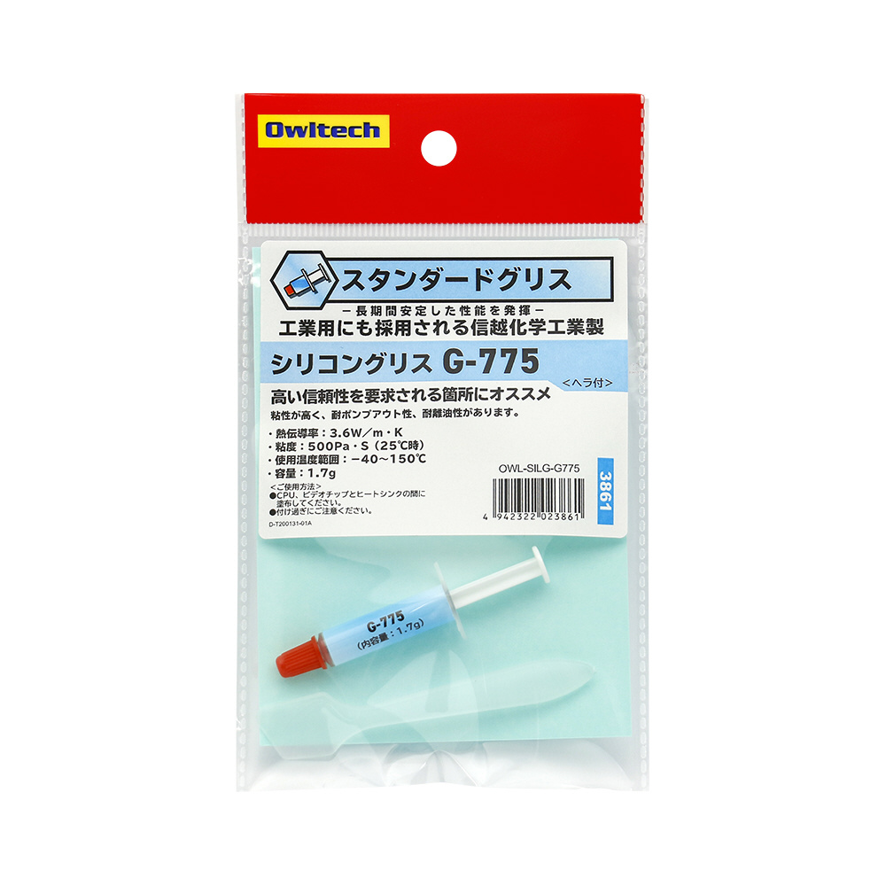 | 商品名 | スタンダードCPU冷却グリス Gシリーズ 1.7g OWL-SILG-G775 |