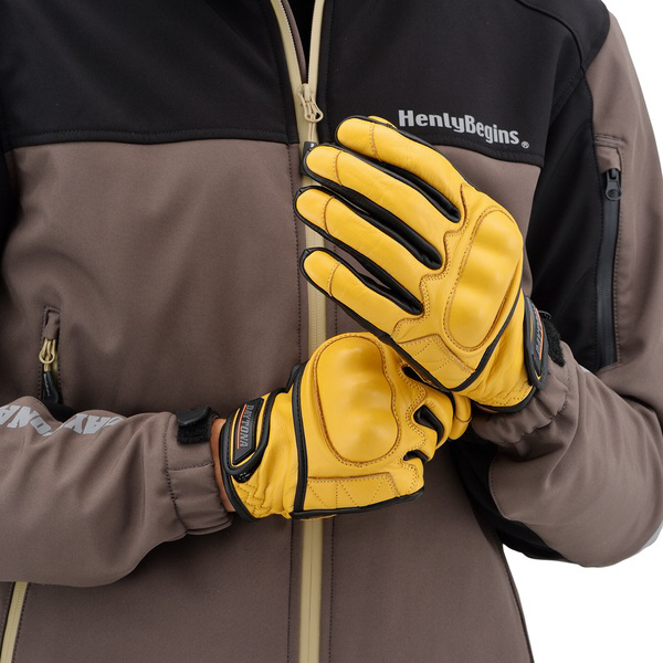 17759 HBG-110 牛革 カウレザーグローブ プロテクター内蔵 Sサイズ イエロー オールシーズン タッチパネル対応