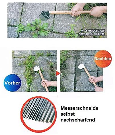 庭・駐車場・道路などのコンクリート・アスファルト・敷石部分の隙間に生えた、雑草を根元から刈り取れます。波型形状だから、刃先を気にせず刈り取れます。ハードな使い方に対応した雑草ブラシ!!