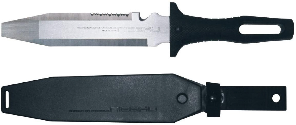 ■サイズ: ナイフ/330×61×30mm シース含/332×61×42mm 刃部全長/110mm+90mm 重量: ナイフ/190g シース含/280g。
