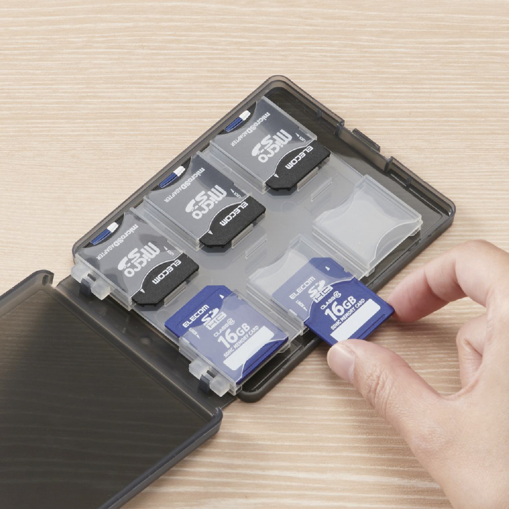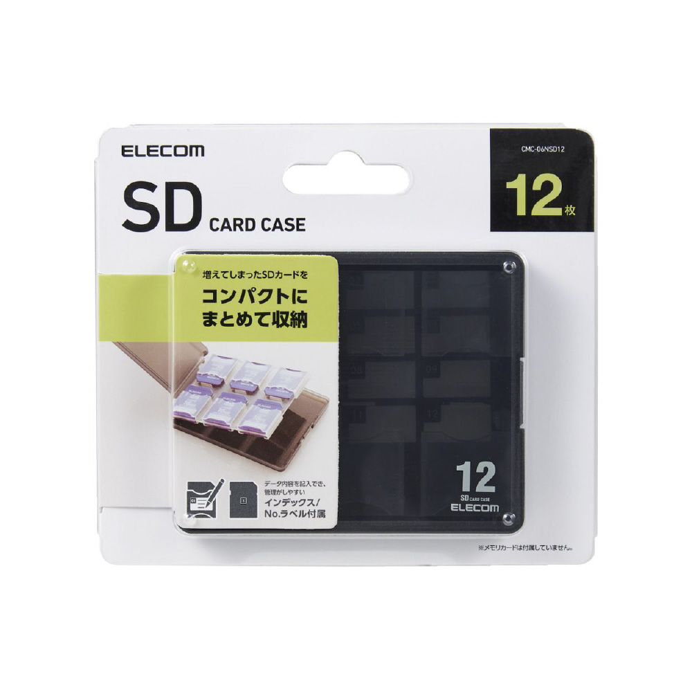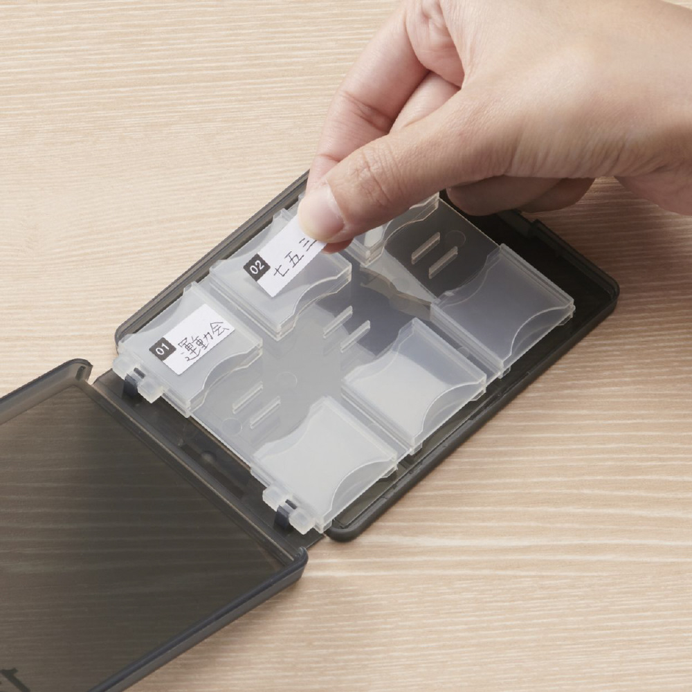 SDカード12枚をまとめて収納!インデックスラベルとナンバーラベル付きで、番号管理しながら整理して収納できるクリアタイプのSDカードケース。
