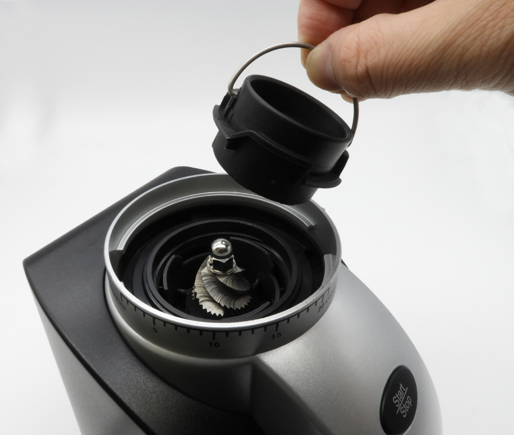 約300gの豆が入る大容量のホッパー。多めに入れても、挽き残った豆もそのまま保管し、次に挽く事ができます。