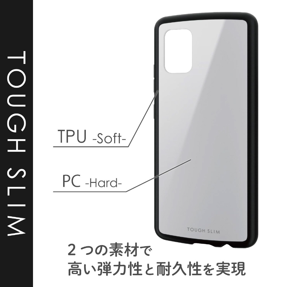 側面に弾力性のあるTPU素材を、背面に高硬度8Hのポリカーボネート素材を使用した、Galaxy A51 5G用TOUGH SLIM LITEケースです。