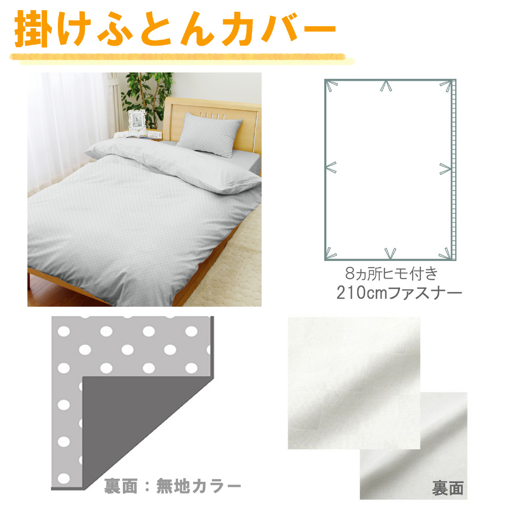 【掛ふとんカバー】SLサイズ:150×210cm、YKK210cmファスナー、8か所ひも付き、表面:プリント(市松柄)、裏面:無地カラー