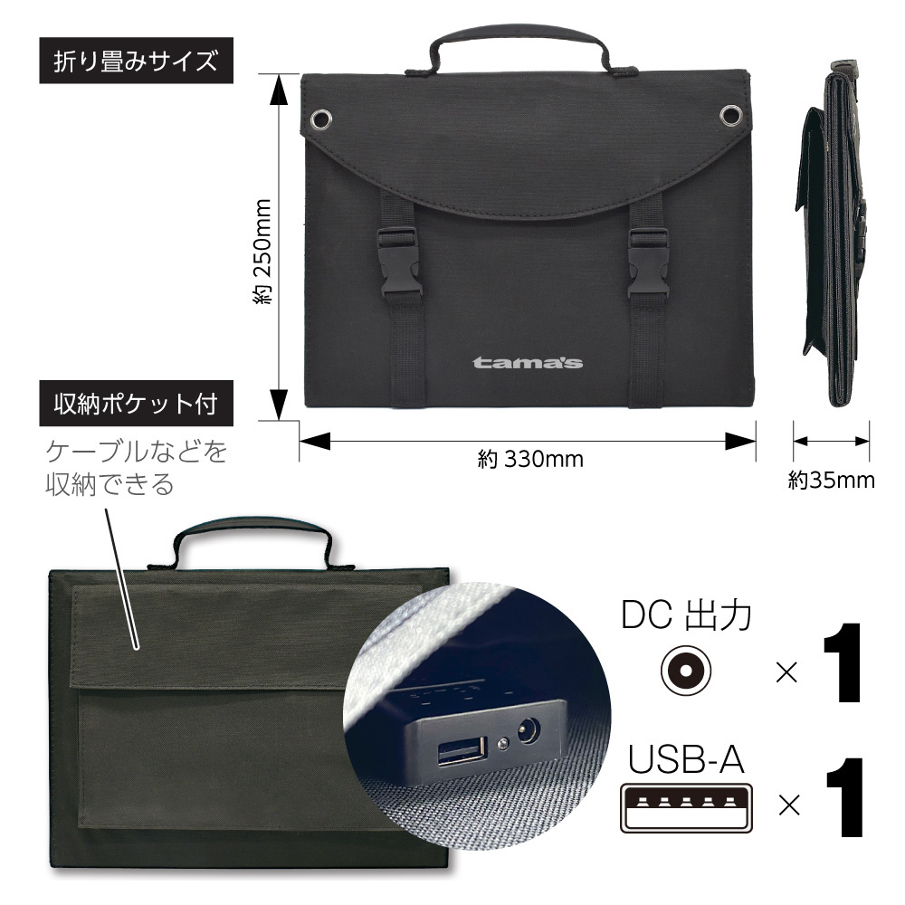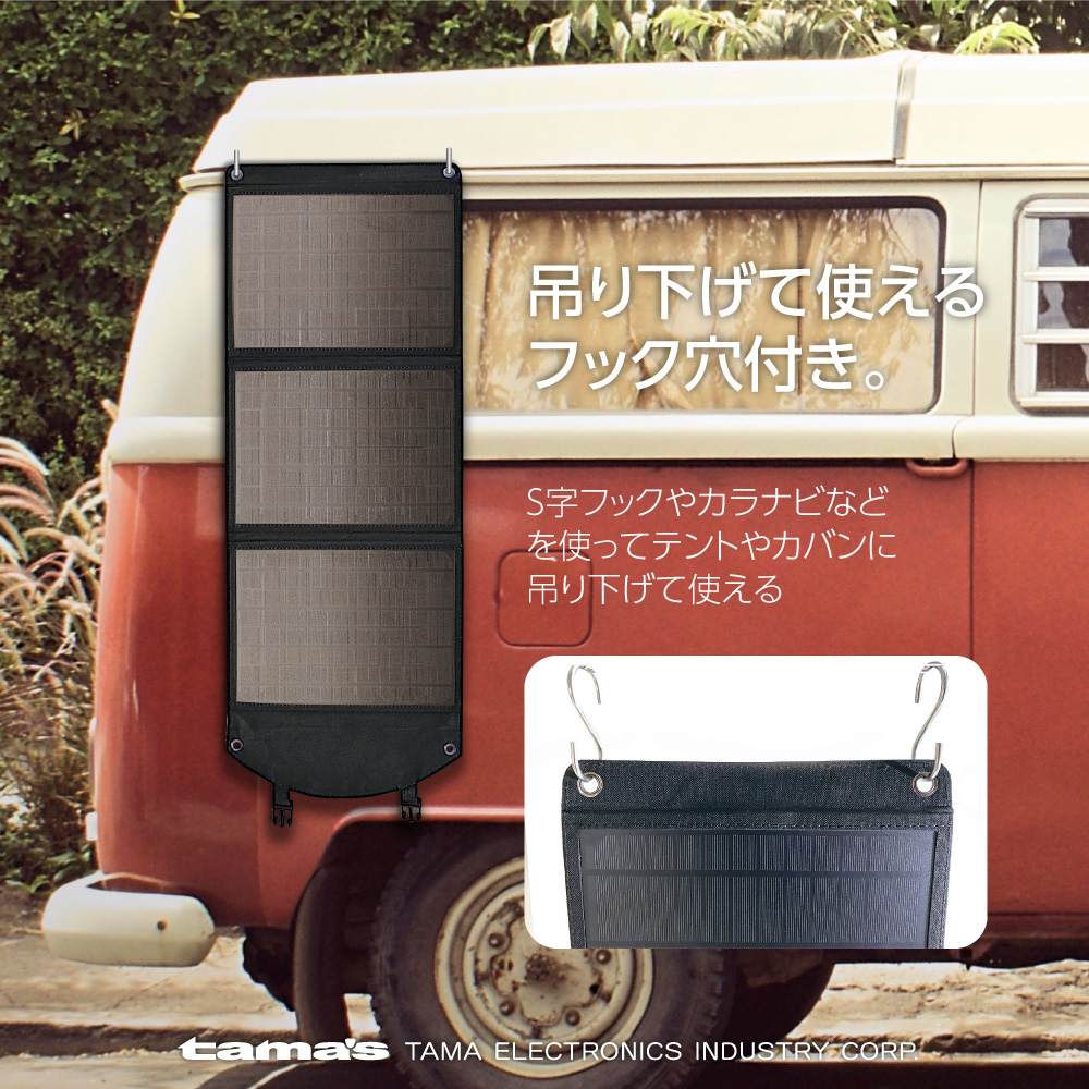 キャンプや避難生活ではポータブル電源の充電用として収納・移動時にも便利です。