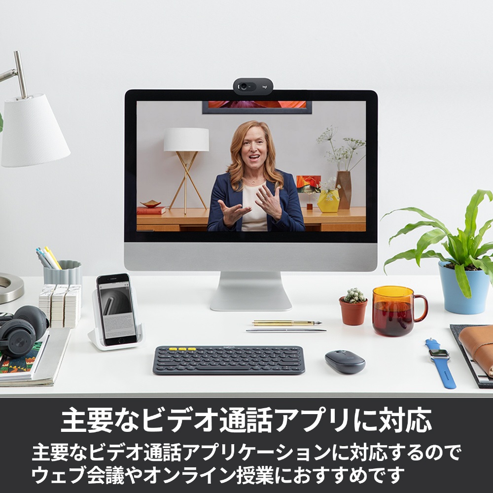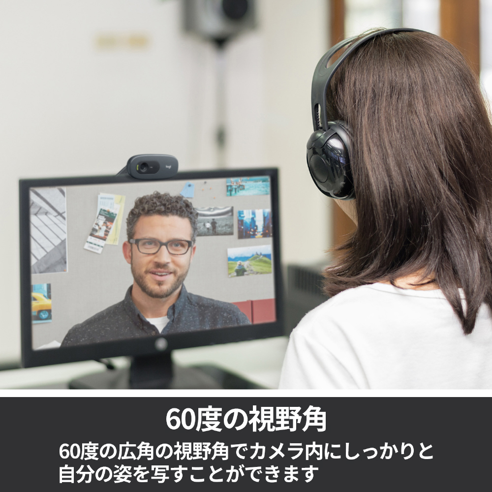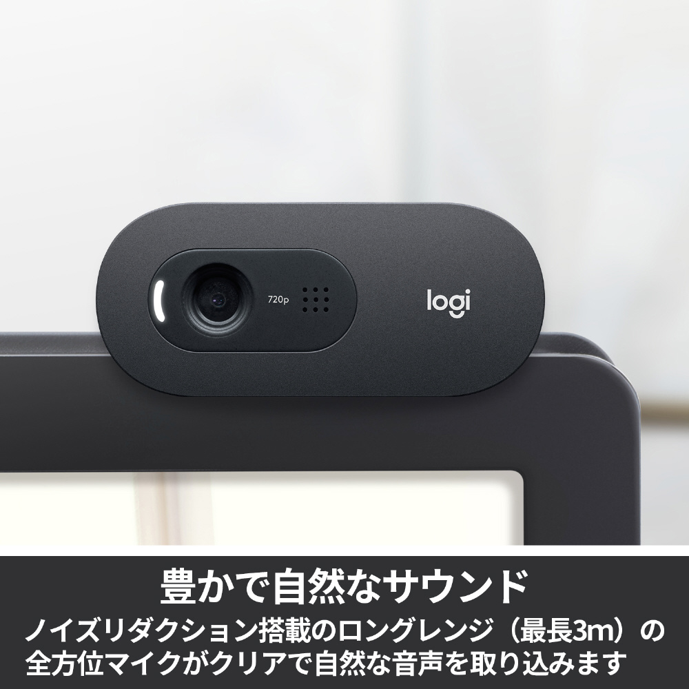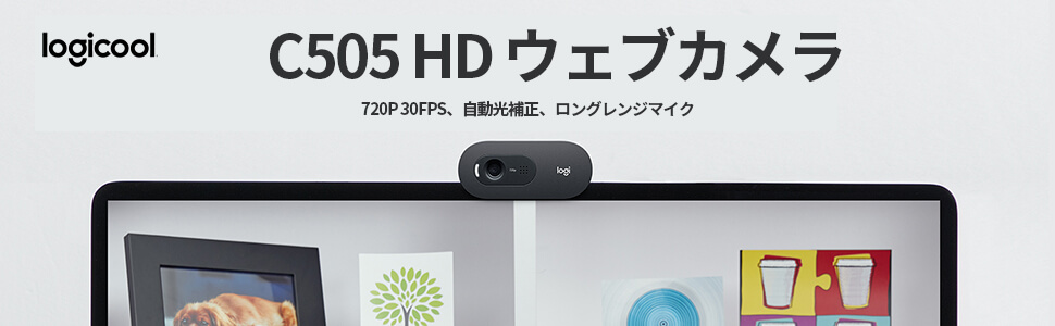 C505は、ロジクールのこれまでの経験に基づくレンズとフォーカスの最適化により、クラス最高の画質に向上させました。ワイドスクリーンのHD720p / 30 fpsの解像度で、より鮮明でなめらかな映像を提供するウェブカメラです。60°の広い視野角、固定フォーカス、周囲の明るさに合わせて自動で映像の明るさを調整する自動光補正を搭載しています。PCの内蔵カメラからステップアップできます。